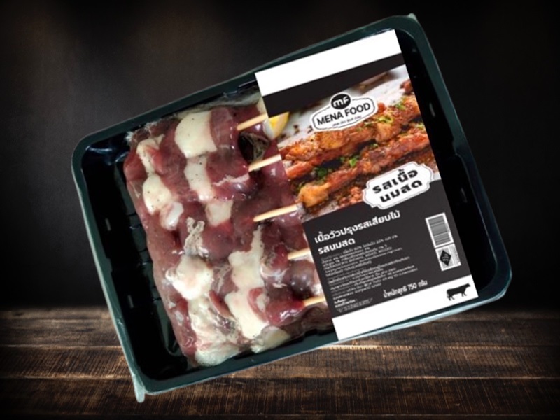 ชิ้นส่วนเนื้อวัวสดเสียบไม้ พร้อมปรุงรส บรรจุถุงและชิ้นส่วนเนื้อวัวหมักปรุงรสบรรจุถุงแช่เย็น สำหรับใช้ ปิ้งย่าง ประกอบด้วย